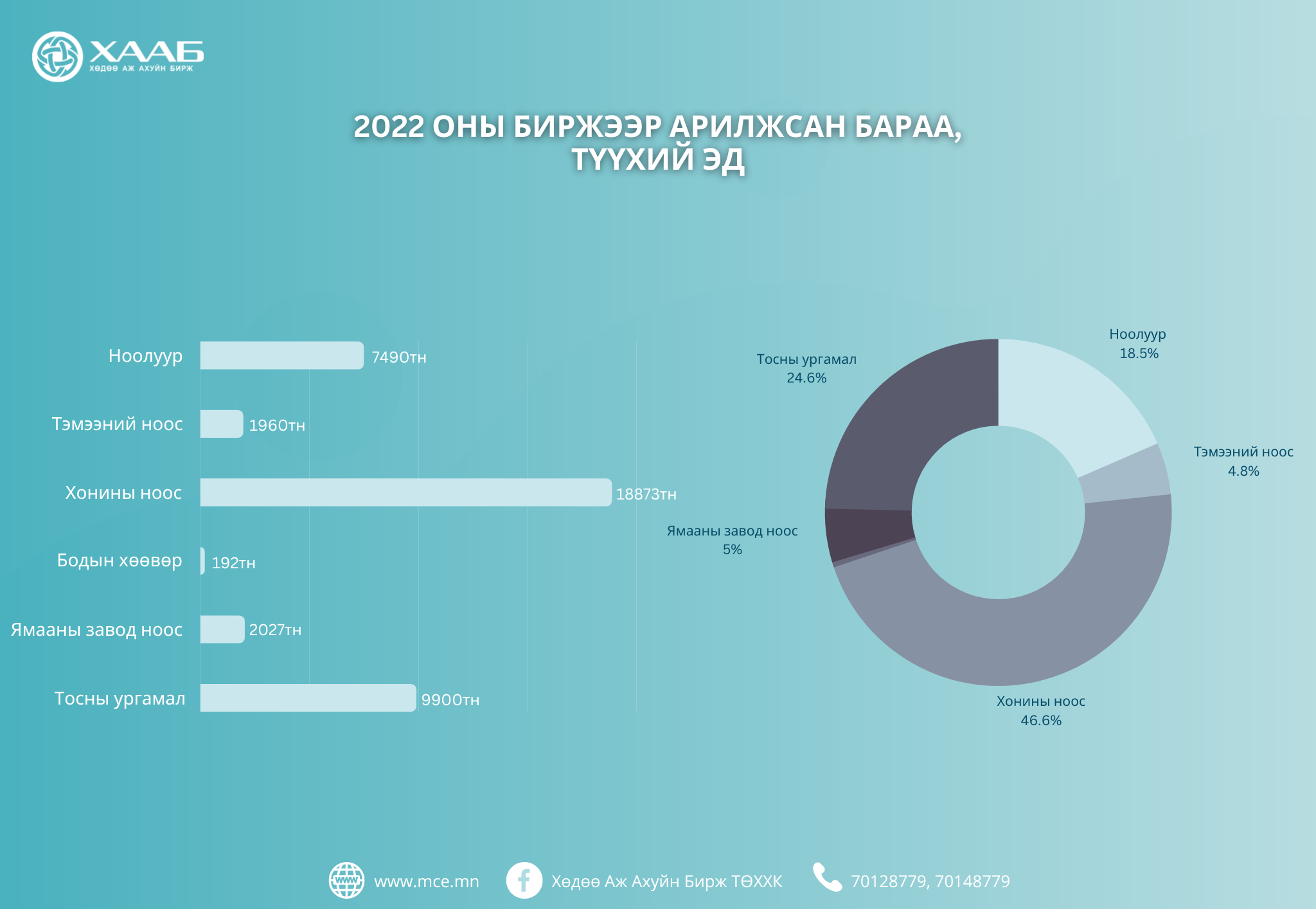 Бодын хөөвөр – 192 тн тус тус арилжсан бөгөөд амьд малын арилжааг амжилттай зохион байгуулж 20 толгой хонь арилжсан байна.