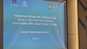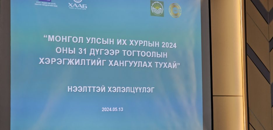 Монгол улсын их хурлын 2024 оны 31 тогтоолын хэрэгжилтийг хангуулах тухай нээлттэй хэлэлцүүлэг 2024 оны 5 дугаар сарын 13-ны өдөр Дархан уул аймгийн Ургамал газар тариалангийн хүрээлэнгийн хурлын танхимд боллоо. Хэлэлцүүлэгт Хүнс, хөдөө аж ахуй хөнгөн үйлдвэрийн яам, Засгийн газрын хэрэг эрхлэх газар, Хөдөө аж ахуйн бирж ТӨХХК, Стандарт, хэмжил зүйн газар, “Хөдөө аж ахуйн корпораци” ТӨХХК, Ургамал, газар тариалангийн хүрээлэн, Дархан-Уул, Сэлэнгэ, Төв, Булган аймгийн ХХААГазар, Гурилын үйлдвэрийн төлөөлөл, Тариалан эрхлэгчдийн төлөөлөл оролцож дээрх тогтоолын хүрээнд хэрэгжүүлэх үрийн болон хүнсний улаан буудайг биржээр арилжих зарчим, ХААК-ын элеваторийг тариалан эрхлэгчдэд ашиглуулах, гурилын болон буудайн стандартын шинэчлэл зэрэг асуудлаар холбогдох газруудаас мэдээлэл хийж, Хөдөө аж ахуйн биржээс хүнсний улаан буудайг биржээр арилжих журмын төслийг танилцуулан хэлэлцүүлэг өрнүүлэв.